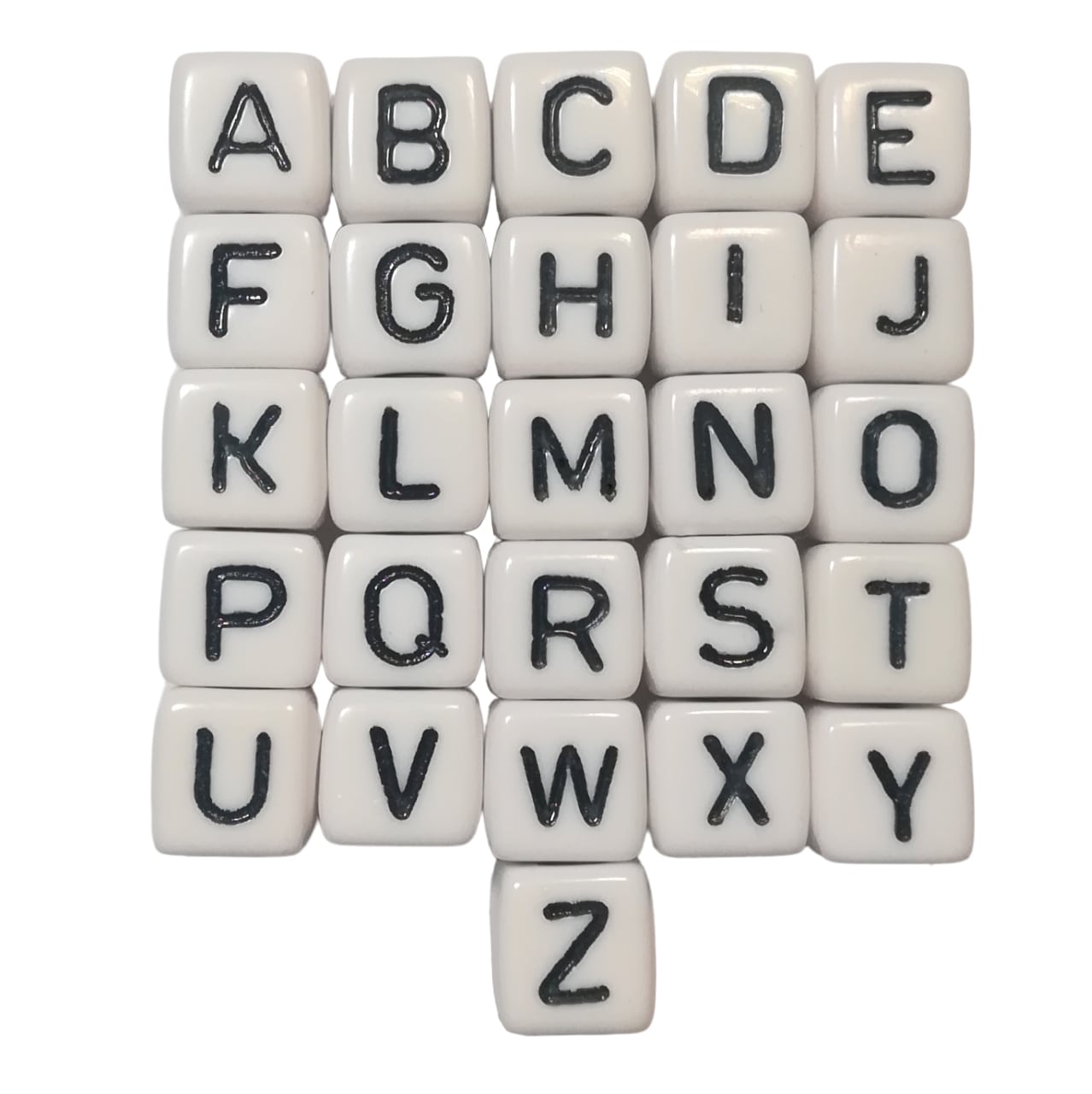 10 x 10 mm   |   Bohrung ca. 4 mm   |   Auswahl A-Z   |   Material: Acryl