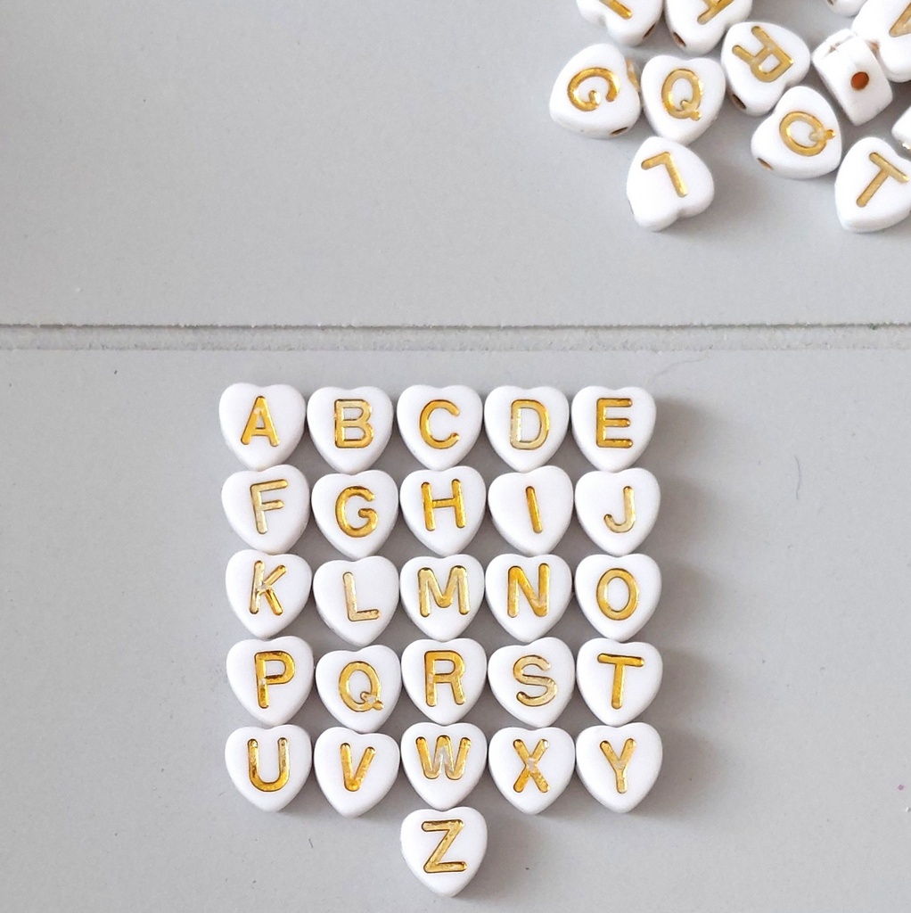 Buchstabenperlen Herz-Weiß-Gold 100Stk