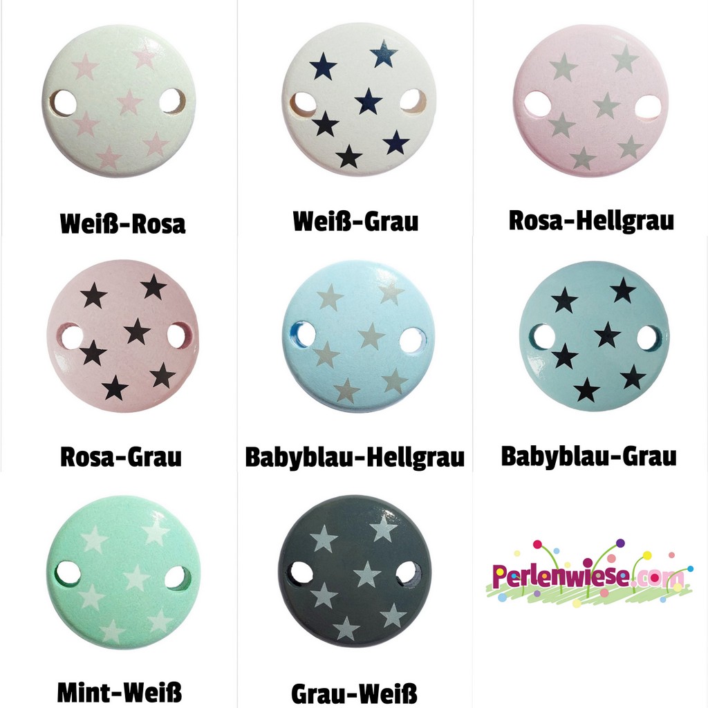 Miniclips mit Sternenaufdruck | Ø ca. 30 mm, mit 2 Ventilationslöchern l Material: Ahornholz