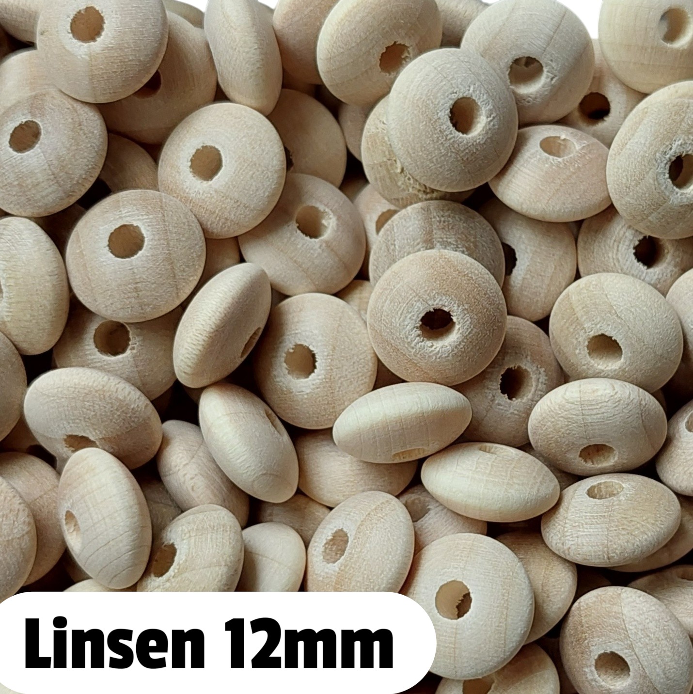 1 Päckchen = ca. 50 Stk. | Ø ca. 12/6 mm, Bohrung ca. 3 mm | Material: Ahornholz