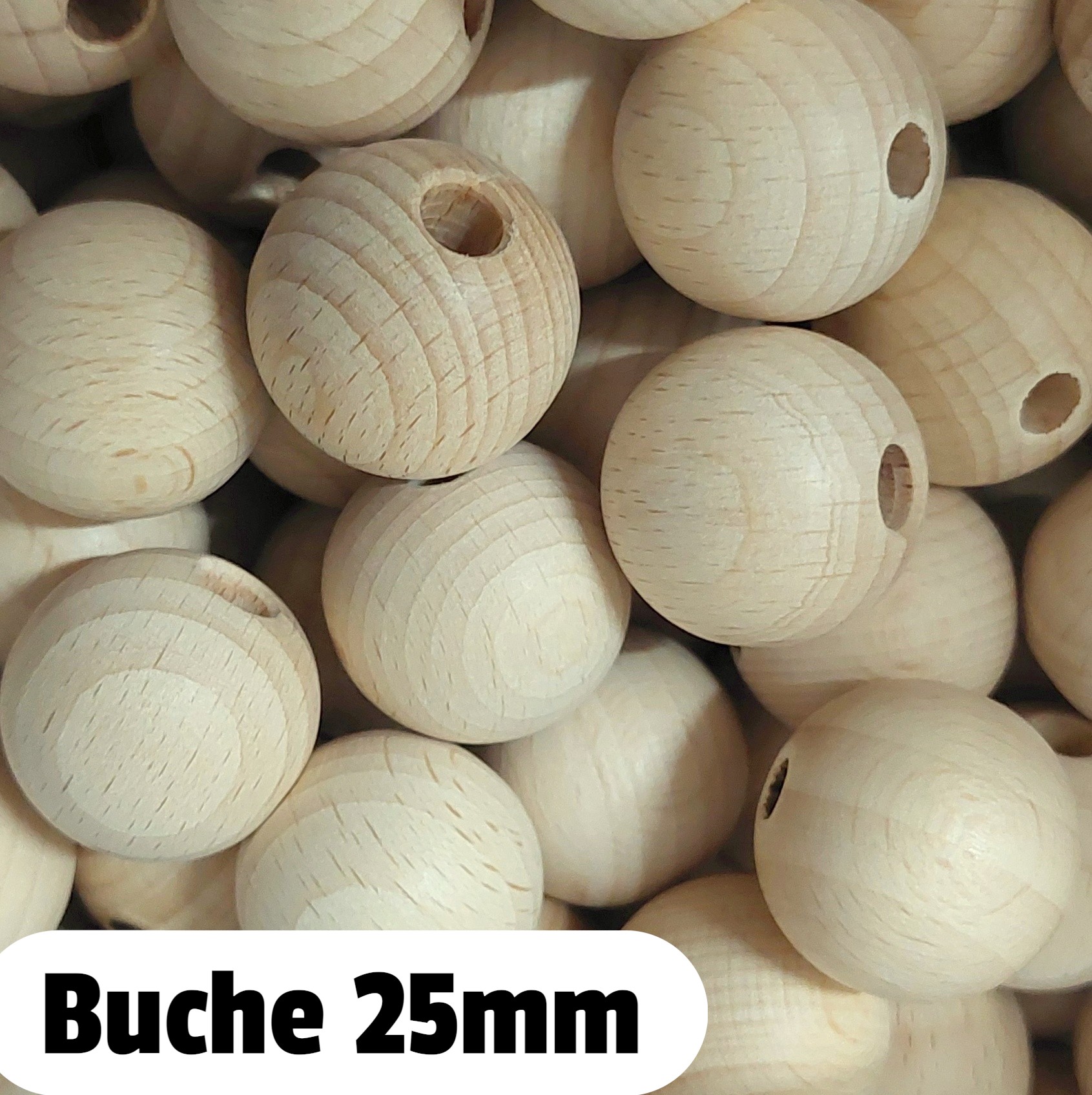 1 Päckchen = ca. 5 Stk.   |   Ø ca. 25 mm, Bohrung ca. 4 mm   |   Auffädellänge eines Päckchens ca. 11 cm   |   Material: Buchenholz