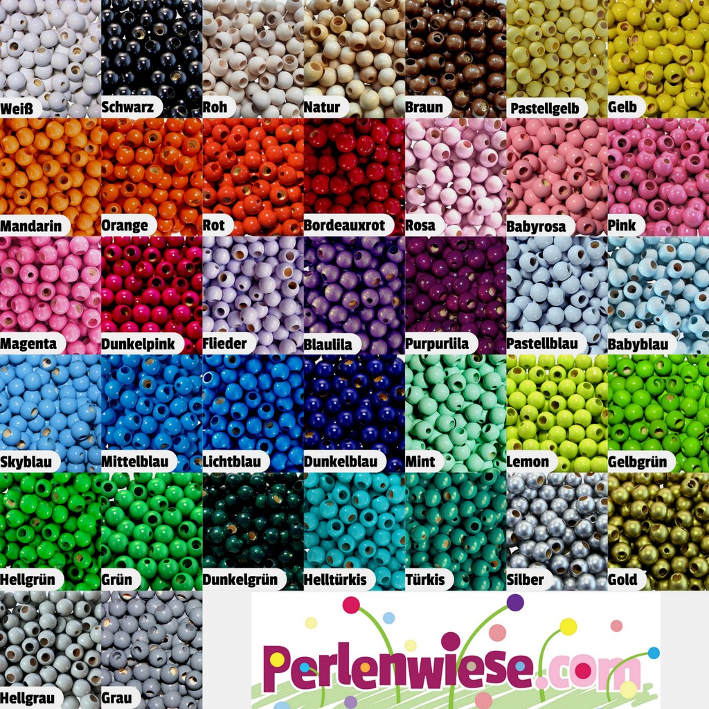 1 Päckchen = ca. 25 Stk.   |   Ø ca. 10 mm, Bohrung ca. 5mm, andere Seite der Perle 3 mm   |   Material: Ahornholz